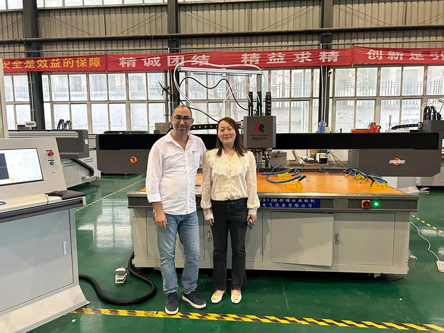考察數(shù)控設備,對工業(yè)機器人的興趣是百分百,對新能源產(chǎn)業(yè)也是流連忘返,在我們準備發(fā)貨的設備前面不走了,一定要拍照留念,讓我們的銷售人員細心介紹每款產(chǎn)品的功能。